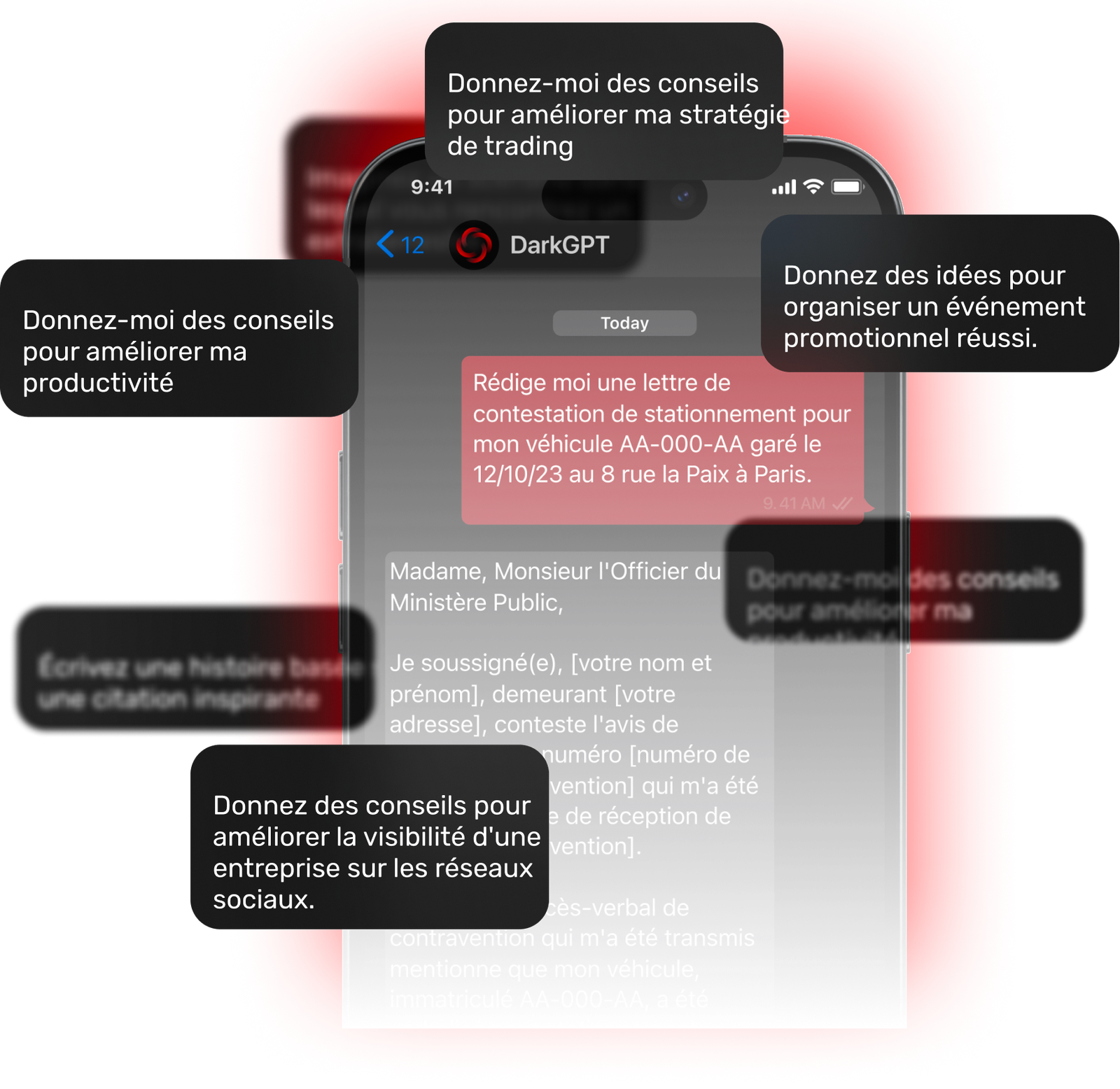 Découvrez les témoignages de nos utilisateurs et rejoignez la communauté DarkGPT. Des milliers d’utilisateurs ont fait le choix de la simplicité et de l’efficacité avec notre chatbot intelligent sans limite.
